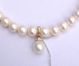Modischer Charm Clipanhänger. Die runde, weiße Südseeperle hat einen sehr schönen Glanz ind ist 14 mm im Durchmesser. Der massive Clipanhänger ist aus 925 Silber, Oval. Auf der Perle ist ein Strassrondel.
